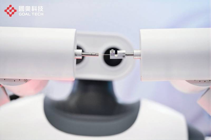 在发布会现场,G-Tools的穿针演示引发了观众轰动。G-Tools把一根比绣花针还细的针,精准穿插到微孔中。品牌方认为G-Tools这种微米级精度能力遥遥领先同行,是目前工业具身机器人唯一一个。