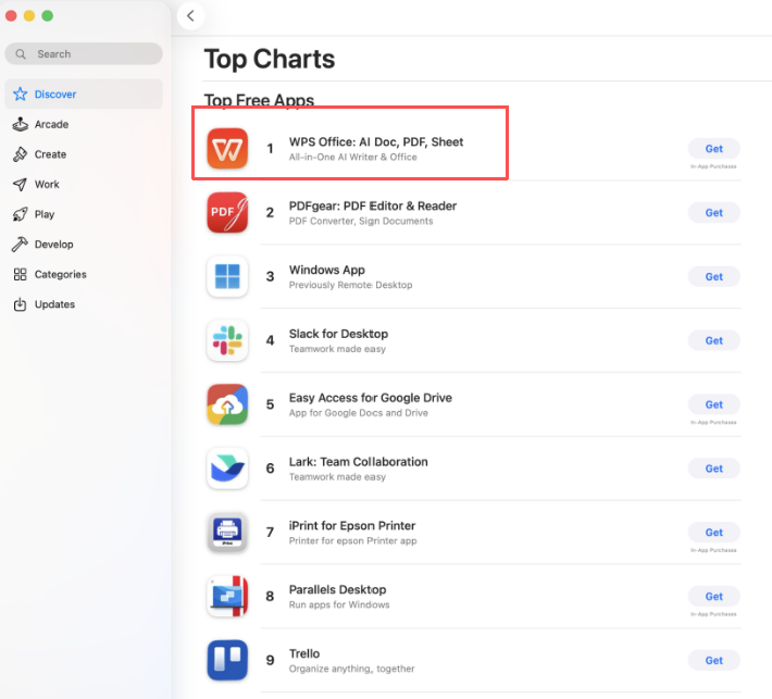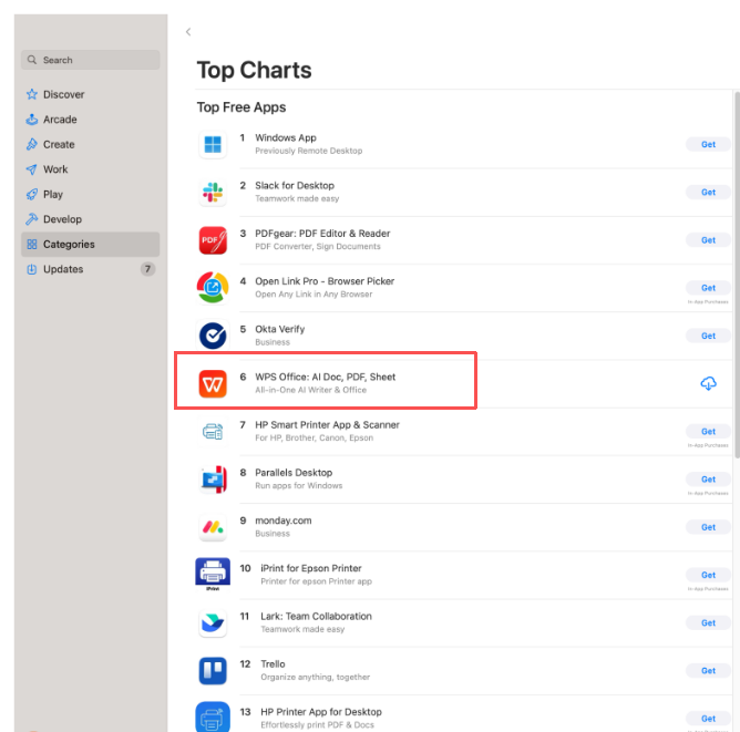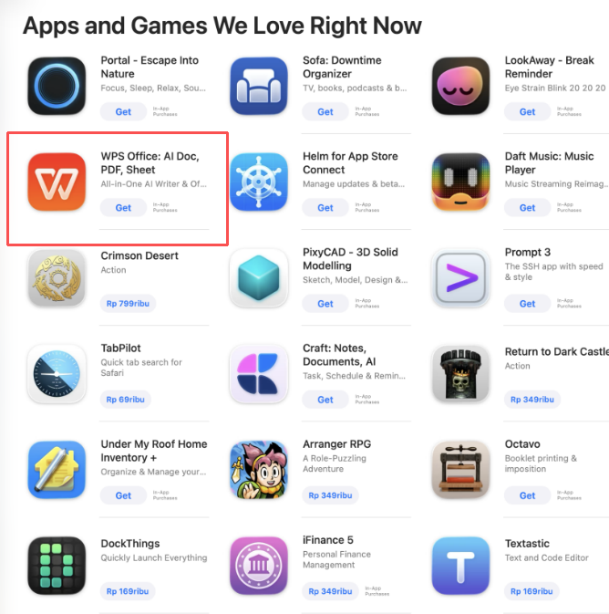 4月中旬,WPS Office for Mac全球上新。上线初期,该产品即进入多国App Store榜单前列。在东南亚,WPS Office for Mac登上印尼Mac App Store商业榜第1位,跻身免费总榜第12位;在美国,商业榜单也快速蹿升到第6位。苹果官方还连开多个Banner推荐位置,这不是算法推荐——App Store的编辑推荐由人工筛选,非算法自动推荐。