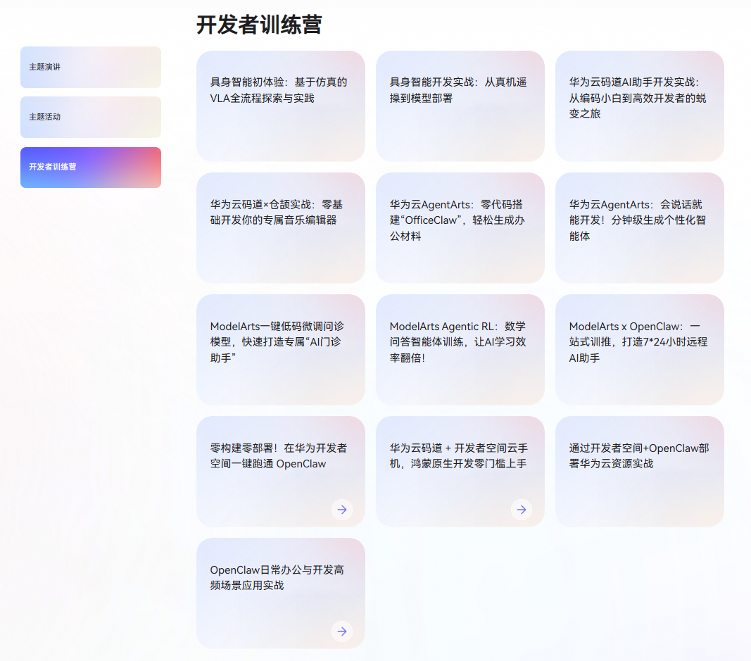 云AI基础设施展点聚焦智能体驱动的底层能力重构,集中展示华为云AI算力集群、一站式模型训推平台及智能运维Agent等硬核技术。