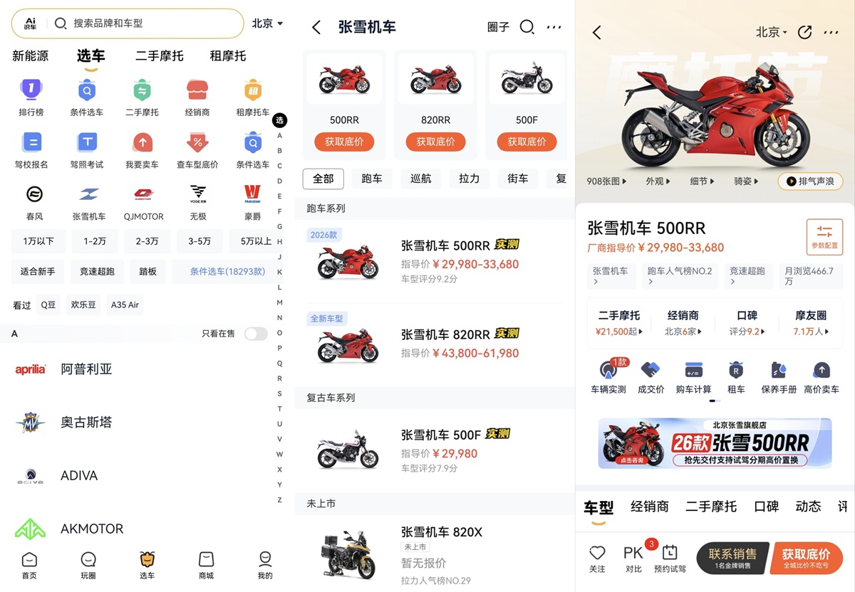 选完心仪的车,买车环节也给你安排得明明白白!一键查询全国各地摩托车经销商,在线获取底价,省钱不吃亏;海量二手车源,交易全程有担保,买卖更放心;更有正品骑行装备选购、驾照考试模拟和驾校报名,从入门到上路,一站搞定。