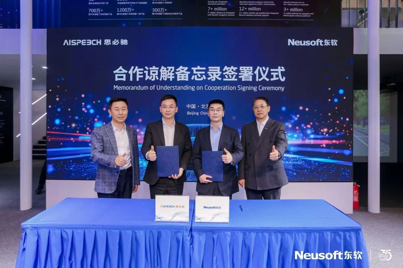 DoNews4月28日消息,据东软集团透露,4月27日,2026北京国际车展期间,东软与思必驰正式签署合作备忘录。双方表示将基于东软全新发布的OneCoreGo全球车载智能出行解决方案7.0,深度整合思必驰在人工智能语音领域的核心技术,共同打造面向全球市场的、具备自然对话与主动智能能力的AI出行伙伴。
