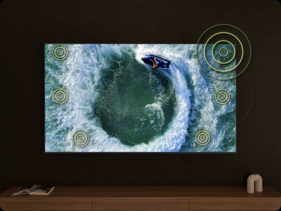 除了无限接近真实的色彩显示,三星Micro RGB在音效塑造上也显现出前所未有的创新实力。杜比全景声4.2.2声道硬件配置,打造出层次分明的多维声场,让每一幕场景中的动作音效都无比扣人心弦。三星Micro RGB支持Q交响乐技术,能够与三星音响协同发声,营造更加出色的环绕声场,让声音从四面八方涌来。在音画追踪OST+技术的支持下,电视扬声器所播放的强劲音效还将覆盖整块屏幕,使声音能够跟随画面物体移动,进一步增强环绕声的逼真感。在观看一部动作大片时,爆炸的轰鸣、子弹的呼啸、汽车的疾驰……每一种声音都清晰可辨,仿佛就在耳边响起。这种全方位包围的音效体验,让用户仿佛成为影片的一部分,沉浸式感受每一个惊心动魄的瞬间。