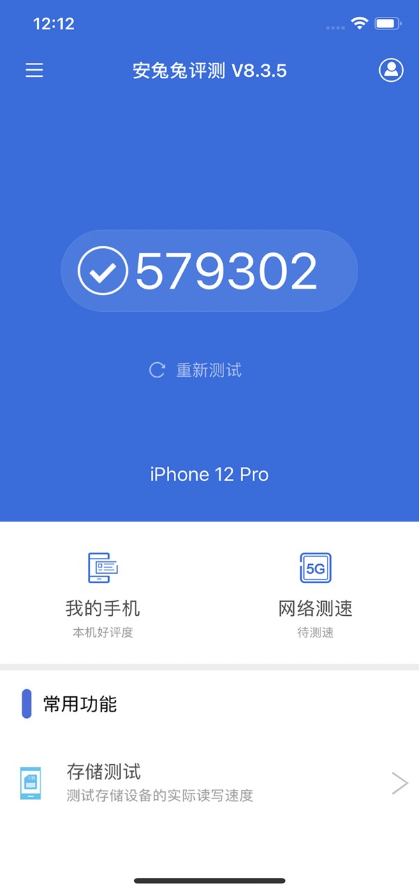 这里就放一个安兔兔的跑分吧,很随意的跑到接近58万分,当然这只是跑了一次。接下来就来实际在游戏中体验一下,下载了王者荣耀和和平精英,总体来说很流畅没有卡顿,当然了市面上的手游如果iPhone 12 Pro都玩不了,那这个手游也就别想赚钱了。