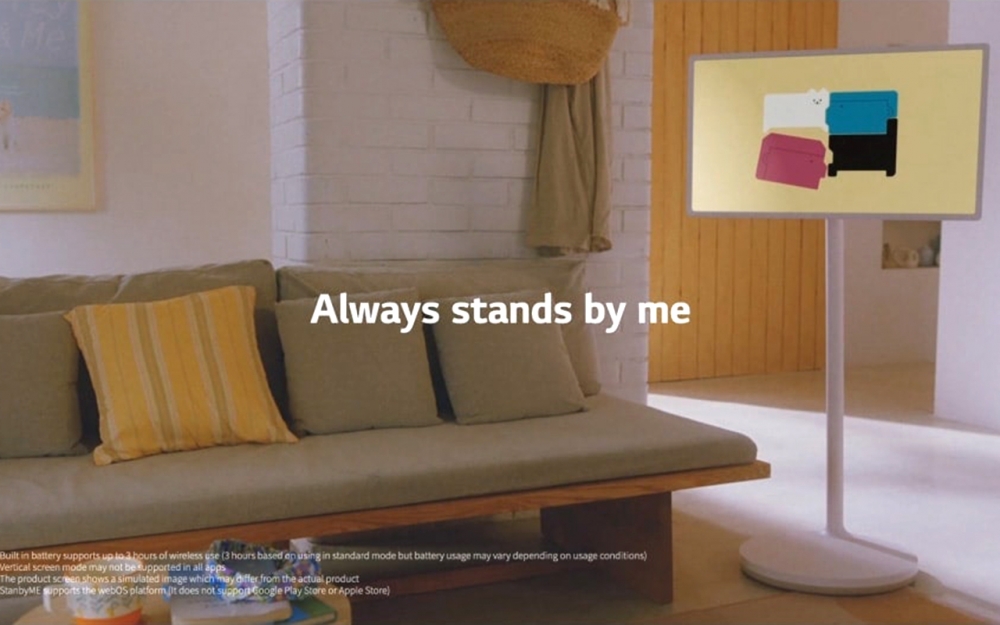 StanbyME 具备可移动、真无线、多角度、可触控的特性,并且支持投屏功能,还提供 Netflix、Prime Video、YouTube 等视频串流服务,运行系统为 webOS Smart,支持 AirPlay 2、Apple Homekit 等协议。设备内置电池,官方宣称单次充电续航时长 3 小时,用户可以将 StanbyME 移动到家中的任何地方或是在户外空间使用。