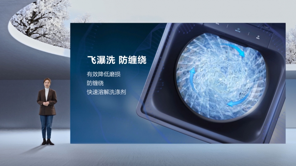 除了因结构本身带来的二次污染,波轮洗衣机在工作时还常会出现衣物缠绕等问题,既降低洗涤效果,又容易拉伤织物,影响穿着舒适度与衣物使用寿命。TCL小蛮腰系列免污洗衣机搭载的飞瀑洗功能,产生自上而下360°冲洗水流和波轮底部喷射孔上托水流,让衣物自由舒展,避免缠绕。洗衣液投放时常常陷入两难困境,放少了污渍洗不干净,放多了又会产生残留,为进一步提升洗衣机的使用便捷性与智慧性,TCL研发AI智能投放功能,自动感知衣物重量,精准自动投放洗涤剂及柔顺剂,并实现智能余量提醒,洗衣液柔顺剂一次添加整月使用。
