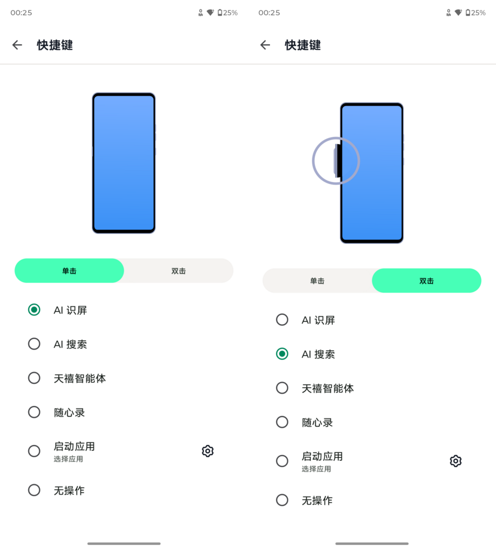 机身左侧的独立AI直达键是一大亮点,按下即响应,无需繁琐操作就能一键调用核心AI功能,用户还可根据自身习惯,自定义单击、双击或长按按键的功能,比如设置为 AI看世界、随心扫、写作等,真正做到键直达需求。