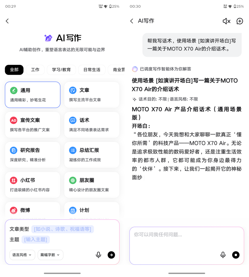 全新升级的天禧个人超级智能体3.5,是联想moto X70 Air的智慧核心,它不仅实现了AI手机与AI PC的页面统一,更将AI功能深度融入日常场景,让交互更便捷、体验更个性化。
