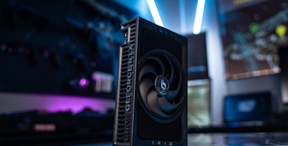 值得一提的是本次产品从外包装到显卡本身,皆体现出设计团队的用心。包装一改前代风格,采用更小巧的体积与独特的“对开翻折式”礼盒设计,大大提升了开箱仪式感。礼盒展开后,可通过卡榫结构向后翻折并立起,宛如展示支架;移开保护棉,iGame Mini显卡便如一件精致的艺术品呈现在眼前。