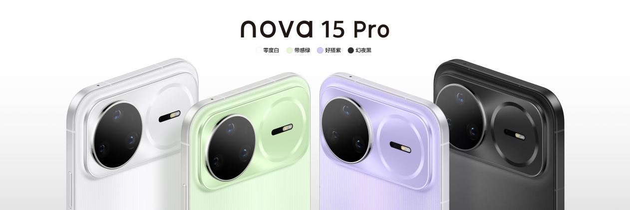 机身工艺全面提升,金属中框与锦纤背板精密拼接,既带来细腻触觉,又在光线折射下呈现流动质感。超窄四边框直屏,让整机兼顾视觉利落感与握持舒适度,将美与实用的平衡推向新高度。配色上nova 15系列带来带感绿、好搭紫、零度白、幻夜黑四款选择,覆盖潮酷、清新、简约等多种风格。