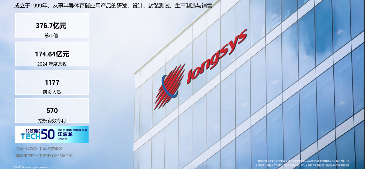 财务数据也佐证了雷克沙在全球市场的强劲表现。2024年度,雷克沙品牌营收达35.25亿元,同比增长45.3% 。依托母公司江波龙强大的全链路垂直产业链整合能力与研发实力——拥有1177名研发人员及570项授权有效专利——雷克沙已构建起从自研主控到封装测试的完整技术护城河 。
