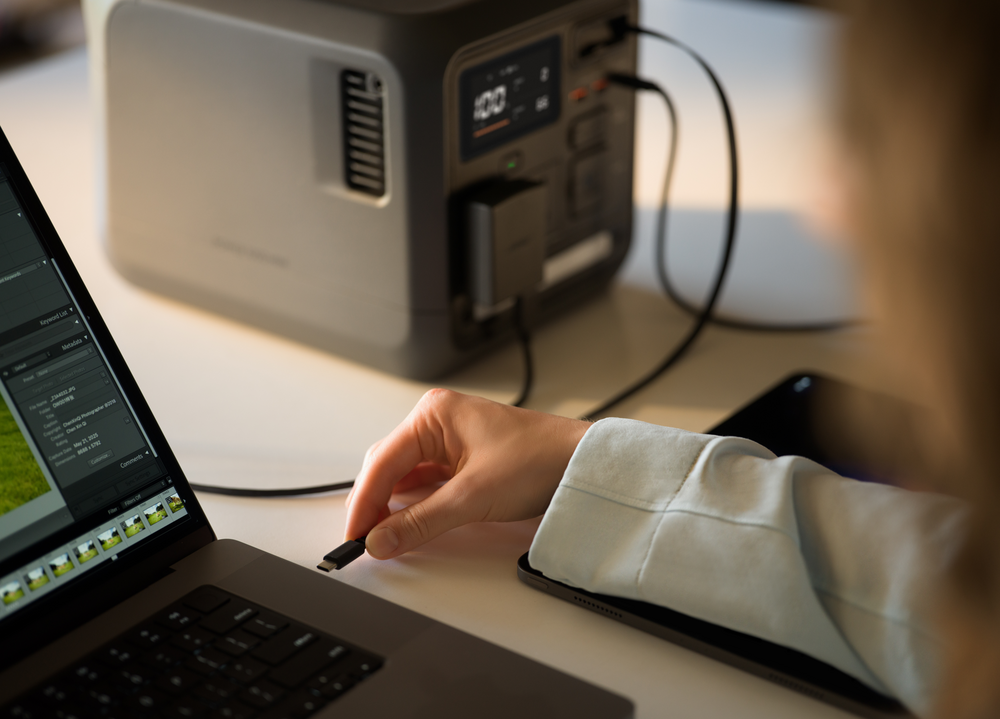 并且,DJI Power 1000 Mini 还支持 USB-C 充电,自带 100 瓦伸缩线,支持通过 USB-C 接口或 100 瓦 USB-C 伸缩线连接充电器为主机应急充电。多种快充补能方式,让移动储能用电体验更加便捷高效。