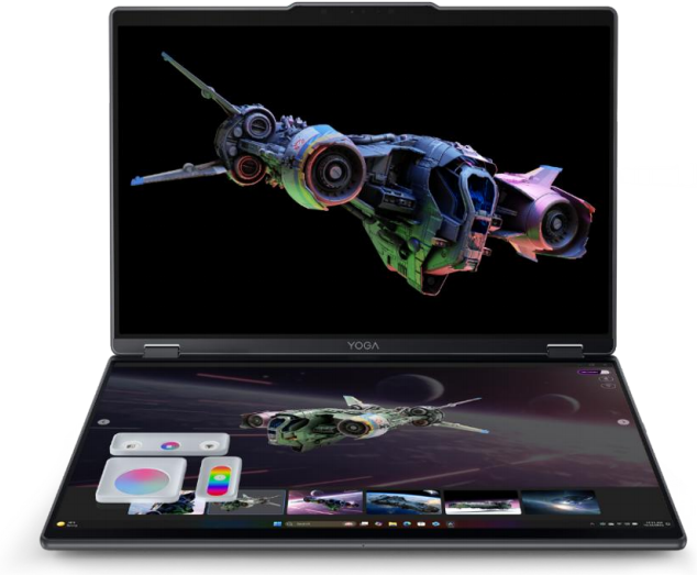 Yoga Book Pro3D概念机正是对这一趋势的回应。 它配备裸眼3D显⽰屏 ,无需额外设备 ,即可让数字内容创作者直接在三维空间中工作 ,更自然地感知深度、形态与空间关系。整机采用双联 Lenovo PureSight Pro Tandem OLED显⽰屏 ,以更好地支撑3D创作所需的复杂界面、多窗口协作与精细操作流程。
