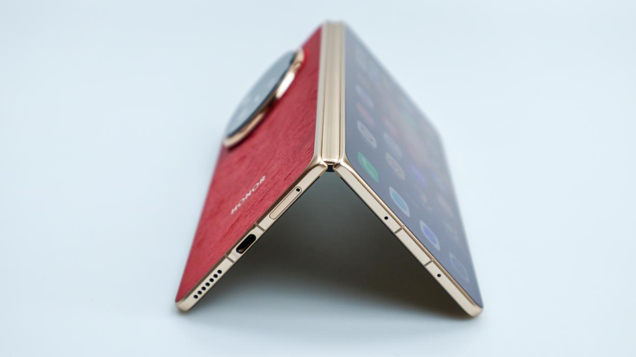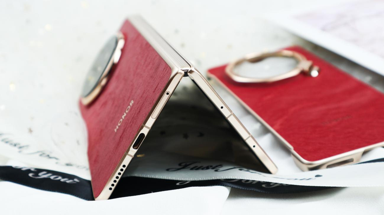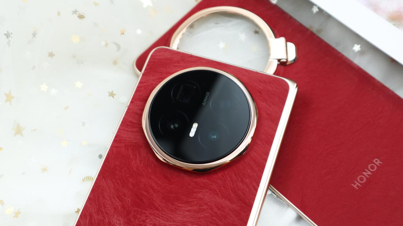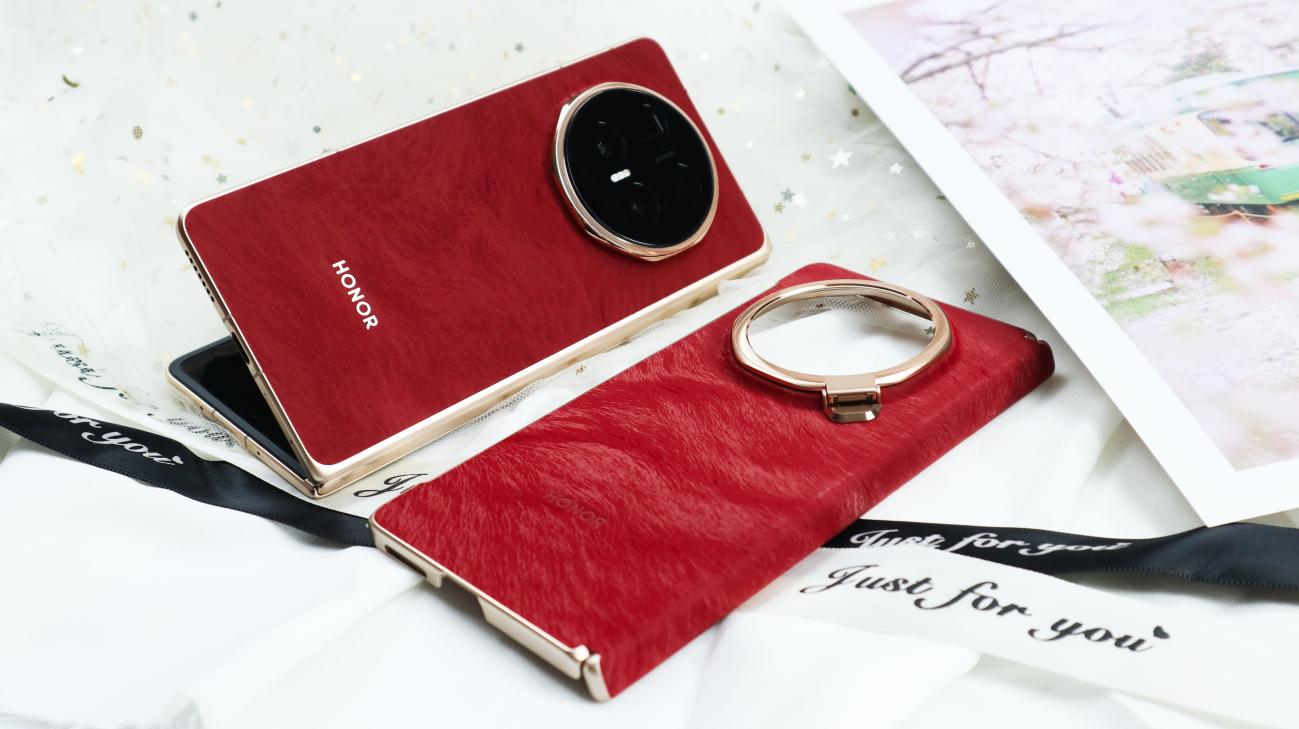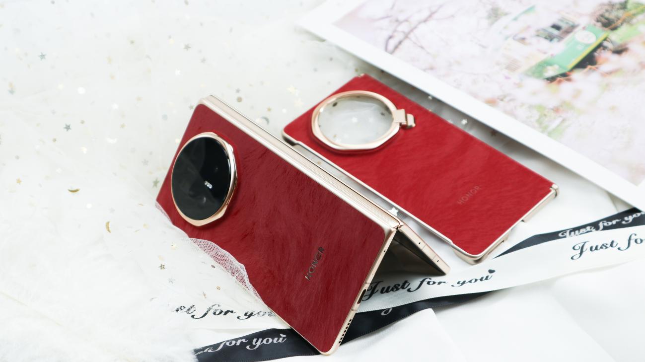 此外荣耀Magic V6共带来赤兔红、旭日金、雪域白、绒黑色四款配色,我手中这款赤兔红作为专属特殊配色,赤兔红以“马中赤兔,红图大展”为设计寓意,将传统文化内涵与现代高端工艺完美融合,成为整机外观的点睛之笔。其配色并非单调的红色,而是精心调制的暖调红韵,既有热烈明快的视觉张力,又不失沉稳内敛的高级感,商务洽谈中既能展现独特品味,又不会过于张扬;在不同光线下,红色会呈现出细腻的明暗层次,适配商务办公、外出洽谈等多种场景。