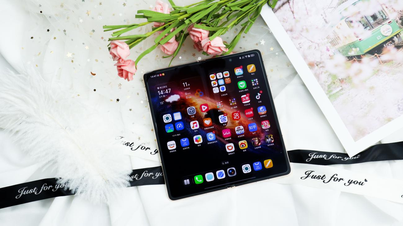 双屏的显示素质同样为商务办公量身打造,外屏6.52英寸,峰值亮度达6000nits,全局亮度2000nits;内屏7.95英寸,峰值亮度5000nits,全局亮度1300nits,无论是在阳光充足的机场候机厅,还是光线较暗的会议室,都能呈现清晰通透的画面,看高清商务方案、视频会议画面都毫无压力。1.5%的专业级超低反射率,让双屏实现室外抗干扰、室内防反光、熄屏超深邃的效果,户外办公时无需遮挡屏幕,也能清晰看清内容;双屏均支持4320Hz超高频PWM调光与十大护眼技术,获得TÜV莱茵全局护眼认证,商务人士长时间处理文档、开视频会议,也能有效降低视觉疲劳,呵护眼部健康。功能层面,行业首发的ADR显示技术可将普通高清视频动态拓展至接近HDR效果,搭配全新HDR动态壁纸,视觉体验更具沉浸感;自研3D点胶技术实现1.18mm的外屏最窄黑边,折叠屏行业第一,进一步提升屏占比与视觉完整性。可以说满足观影、办公、游戏的全兼容。