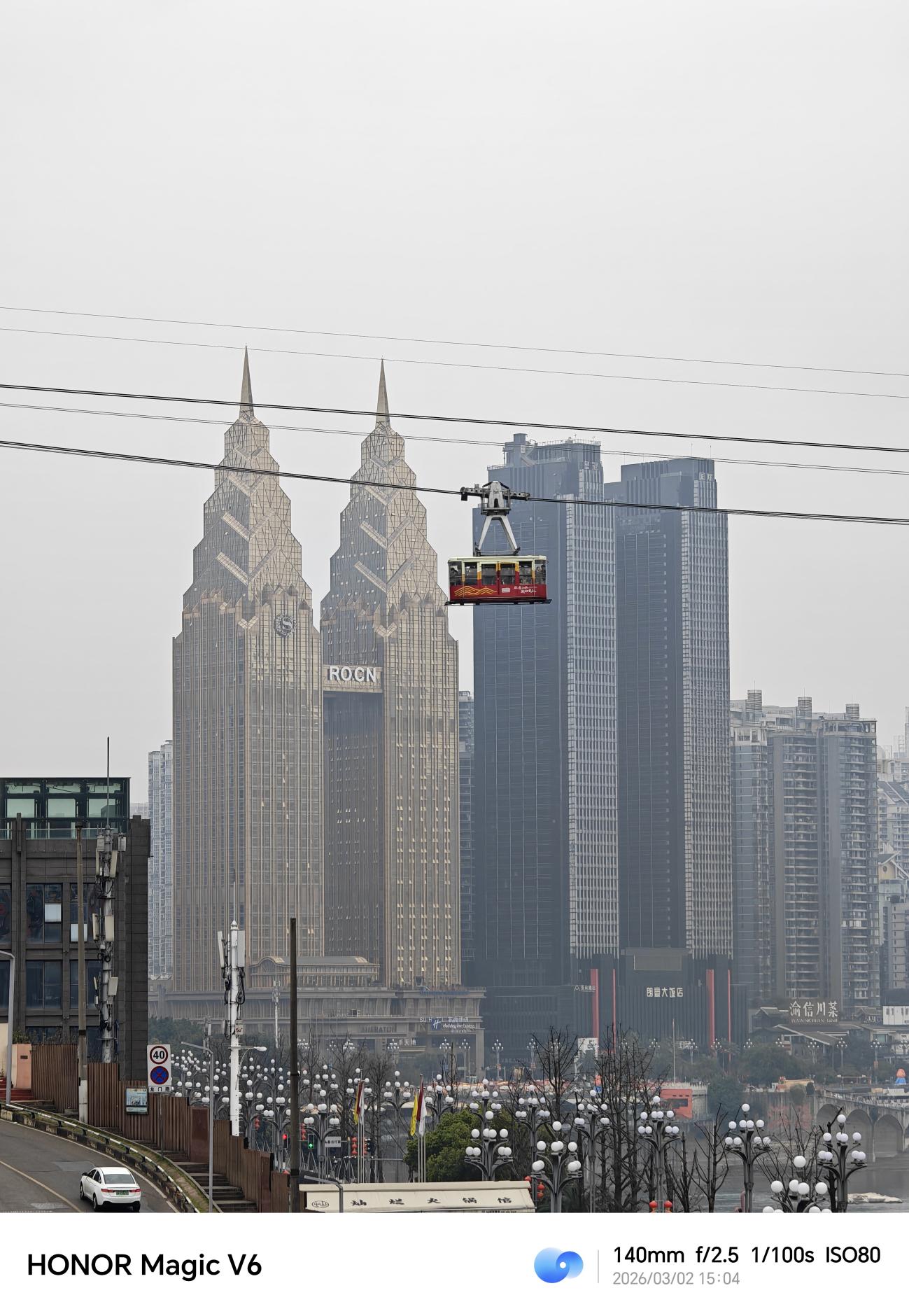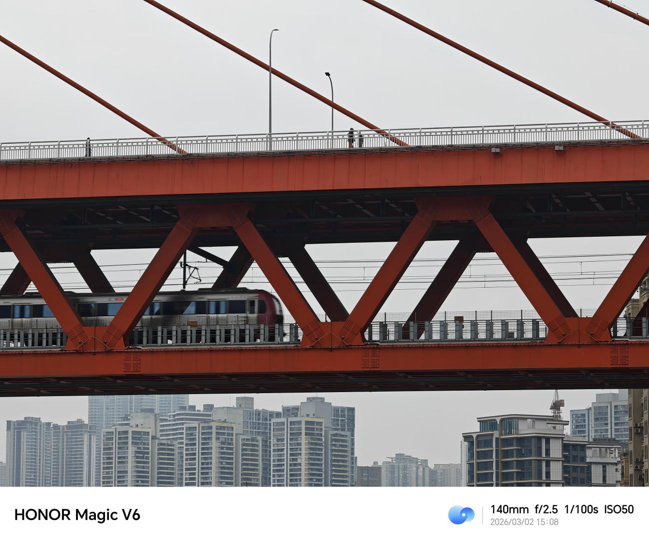 长焦上长江索道和远处的摩天大楼时,即使距离较远,建筑上的标识依然清晰可辨,细节保留完整,没有出现明显的涂抹感。长焦镜头让拍摄者能轻松拉近场景,比如从远处捕捉桥上的行人与列车,或是框选出人物与环境的互动,大大提升了构图的灵活性。人物背景的虚化过渡柔和,突出了主体,同时保留了环境的氛围感。