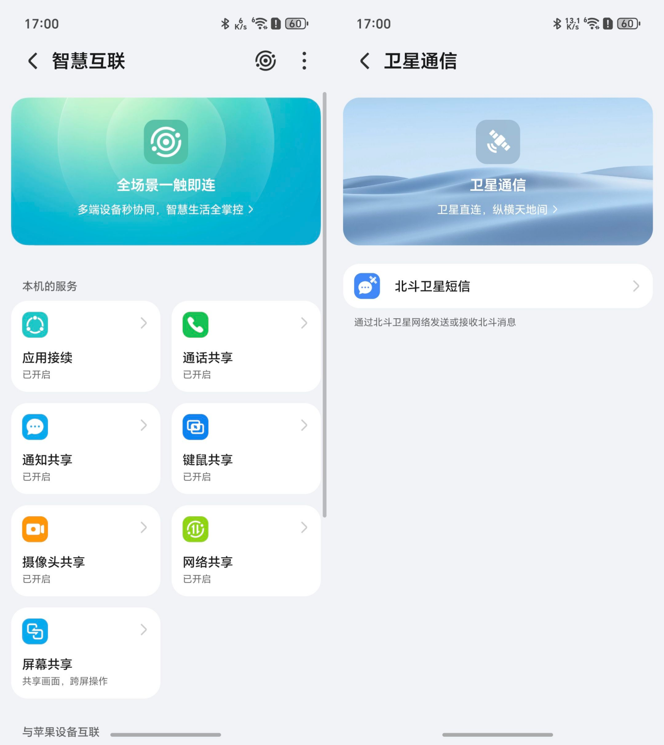 此外荣耀Magic V6也支持北斗卫星通信,在互联方面,荣耀信任环支持设备互联,应用续接、通话共享、通知共享、键鼠共享、摄像头共享和网络共享,屏幕共享,此外荣耀还支持iPhone的互联,
