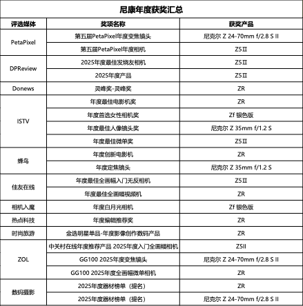 聚焦国内市场,尼康多款产品同样凭借贴合本土创作需求的功能设计与硬核产品实力,在各大专业影像及科技媒体的年度评选中表现抢眼,成为国内创作者心中的优质影像装备之选。