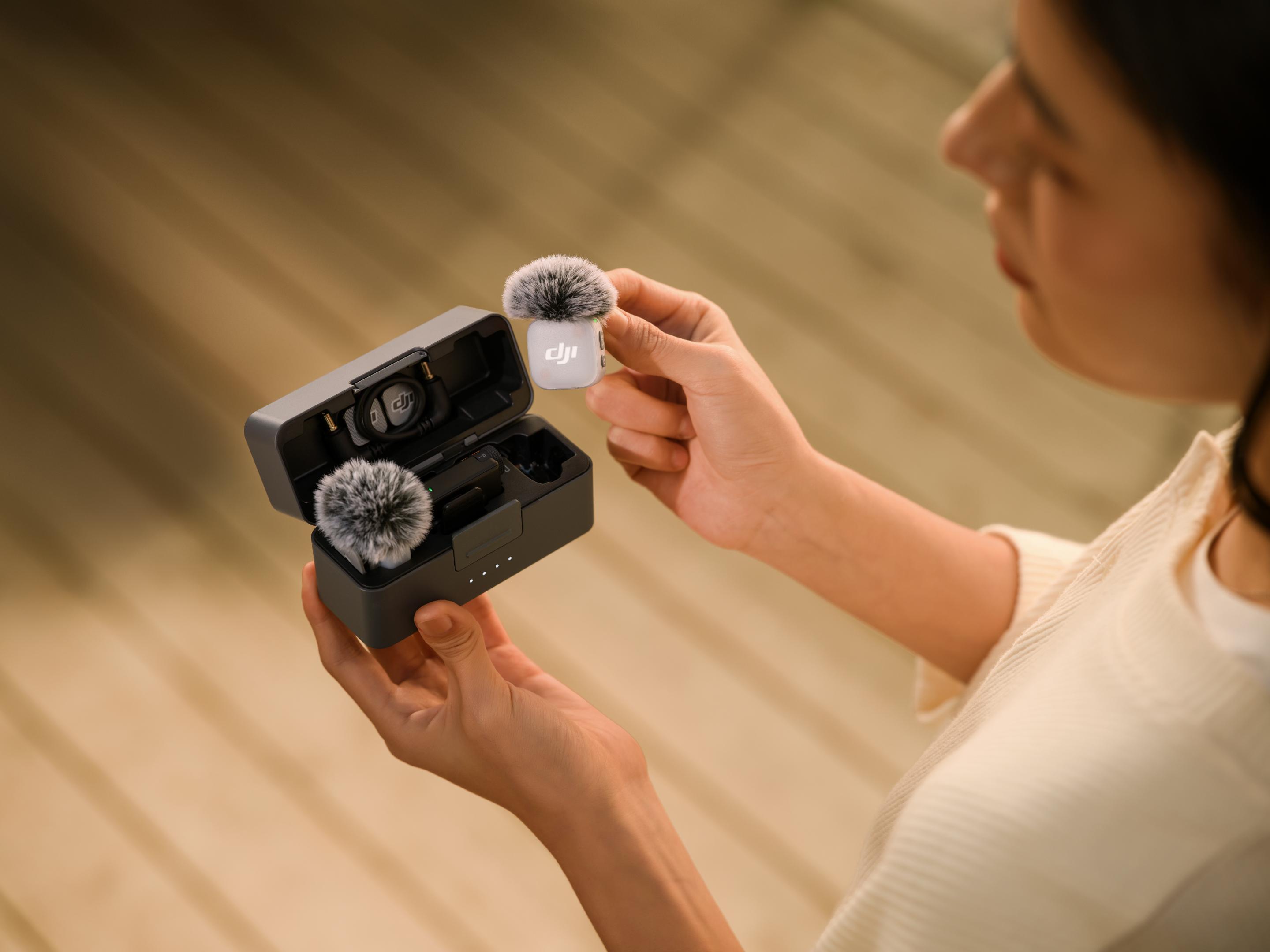 收纳方面,DJI Mic Mini 2 延续了一体式设计理念[1]。充电盒可同时收纳两个发射器和一个接收器,且无需拆卸防风毛套、磁铁或背夹即可直接收纳;盒盖内侧设有专用仓位,用于存放磁铁和 3.5 毫米 TRS 线,真正做到随取随用。此外,全新推出的手机版一发一收充电盒[1]专为移动录音场景打造,可收纳一个发射器和一个手机版接收器,满足手机录音的多样化需求,让便携创作更加高效。