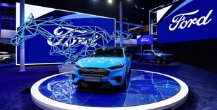 福特展台以全新“势能蓝”设计元素组成独树一帜的福特“先锋产品阵列”