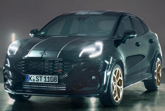 DoNews6月23日(卢逸恺)近日,有海外媒体曝光了一组名为福特Puma ST Gold Edition新车型图片,新车限量推出供消费者选购。据悉,新车动力将搭载一台1.5T三缸涡轮增压发动机,最大功率可达147kW,峰值扭矩320N·m,传动系统或将提供6速手动变速箱。未来新车将在福特位于罗马尼亚的克拉约瓦制造工厂生产,预计2021年年底交付,欧洲地区或售价2.925万欧元,约合人民币22.43万元左右。福特全新仿生学设计理念,让PUMA ST有着肌肤辨识度的外观设计。前脸部分变化还是比较大的,不规则的熏黑进气格栅,加之两侧造型可爱的LED大灯,少了几分凶狠,多了一点可爱。此外,新车还加入专属赛道车身拉花,与金色轮毂等,运动属性更加明显。