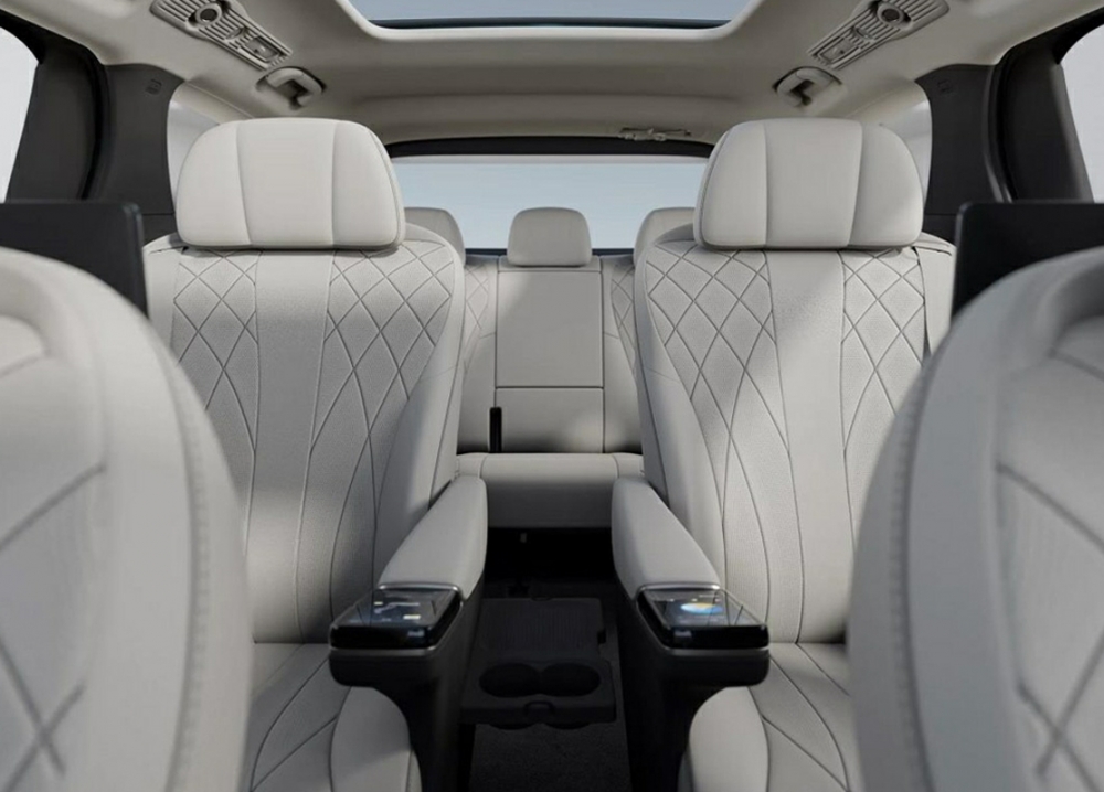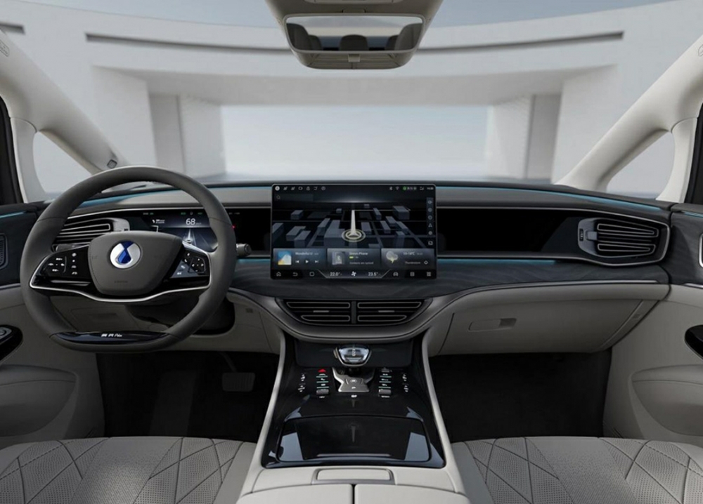 来到车内,腾势D9的内饰延续了比亚迪家族的设计风格,车内采用环抱式座舱布局,配备了15.6英寸的可旋转中控屏,并搭载腾势Link智联交互车机系统,支持语音识别和车联网以及OTA等功能。此外,车内还配备了全液晶仪表盘、两辐式多功能方向盘和电子挡把,提升车内的科技气息。车内座椅采用2+2+3的座椅布局,第二排采用两个独立座椅,还拥有后排娱乐屏和座椅扶手的控制屏,豪华感营造的十分到位。
