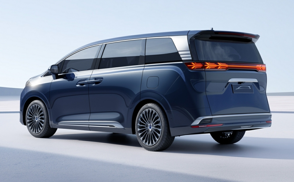 车身侧面是传统MPV的造型,短车头长车身很有商务范,一根腰线贯穿车身,拉伸了车身的横向视觉宽度,多条幅轮毂也让整体看起来更加豪华。同时新车后排采用双侧电滑门设计,方便了后排乘客的上下车,也使其更具豪华感。