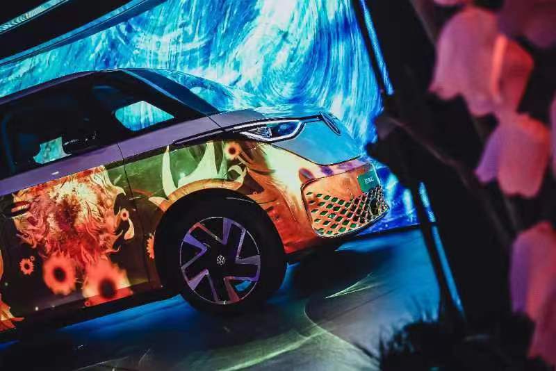 此次路演活动打造了极富特色的三大体验空间。在ID. Buzz灵感花园,消费者可以通过控制投射在车身上的幻彩投影和电子喷绘,DIY专属外观,领略多样艺术风格;
