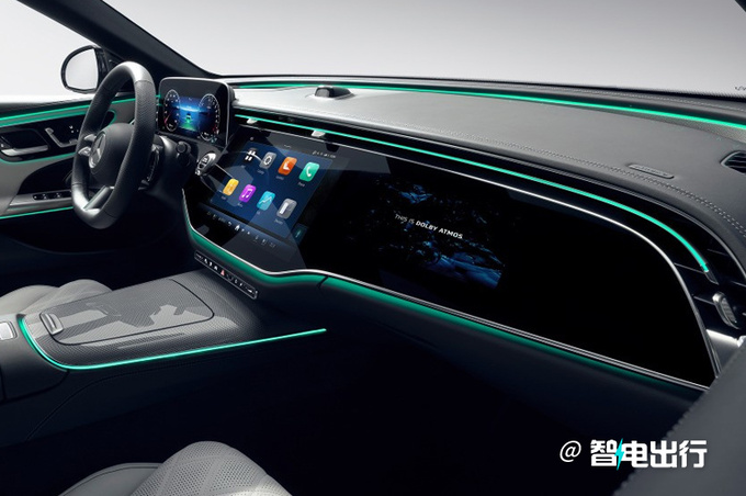 全新一代E级配备最新“MBUX超级屏”融合环抱式座舱,风格与奔驰EQ家族车型所采用的一体式超联屏相似,主要区别是将全液晶仪表由内嵌式调整为悬浮式设计,实体按键移至中控屏下方,一体感更强。新车还搭载了多区域智能空调,内置数字通风控制系统,电动出风口可智能控制风量,还提供柏林之声4D环绕立体声音响系统、杜比全景声技术、主动式环境氛围灯等功能。