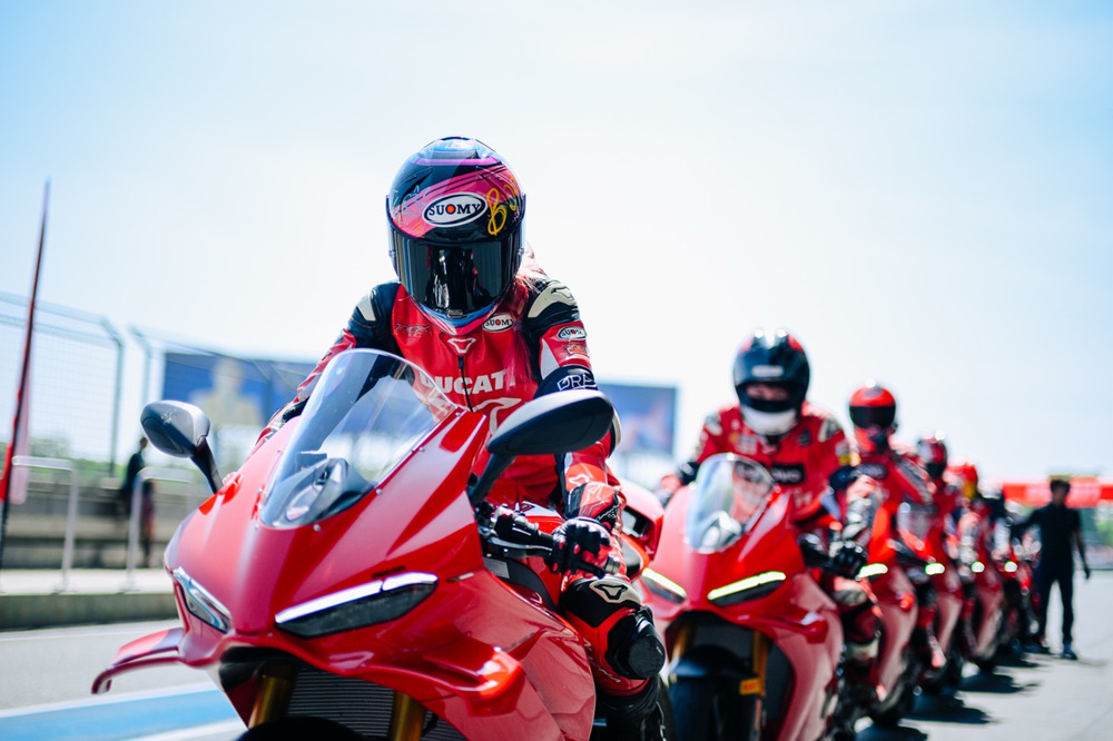 杜卡迪特别安排的赛道试驾将现场气氛推向高潮。中国媒体记者和受邀车主们换上赛车服,骑上全新 Panigale V4,驶入武里南国际赛道的发车区。作为2025 MotoGP揭幕战的举办地,正是检验这款赛车血统超级跑车的绝佳场所,全面释放其卓越性能。