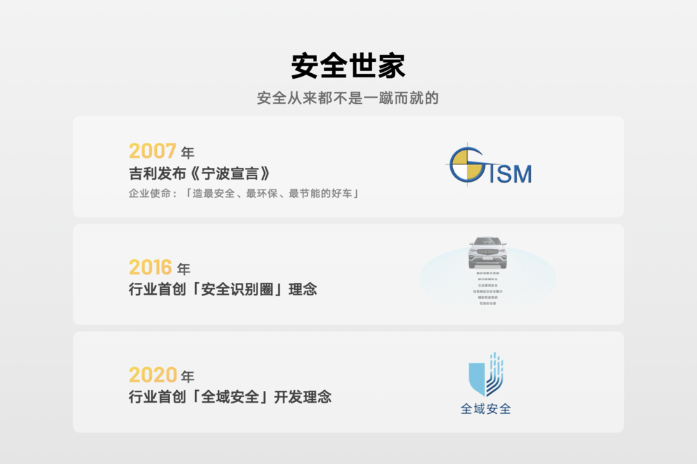 作为汽车安全领导者,吉利还将于今年发布智能汽车全域安全白皮书,重新定义智能汽车安全新标准,公开安全技术成果,以极致安全守护用户的每一段旅程。