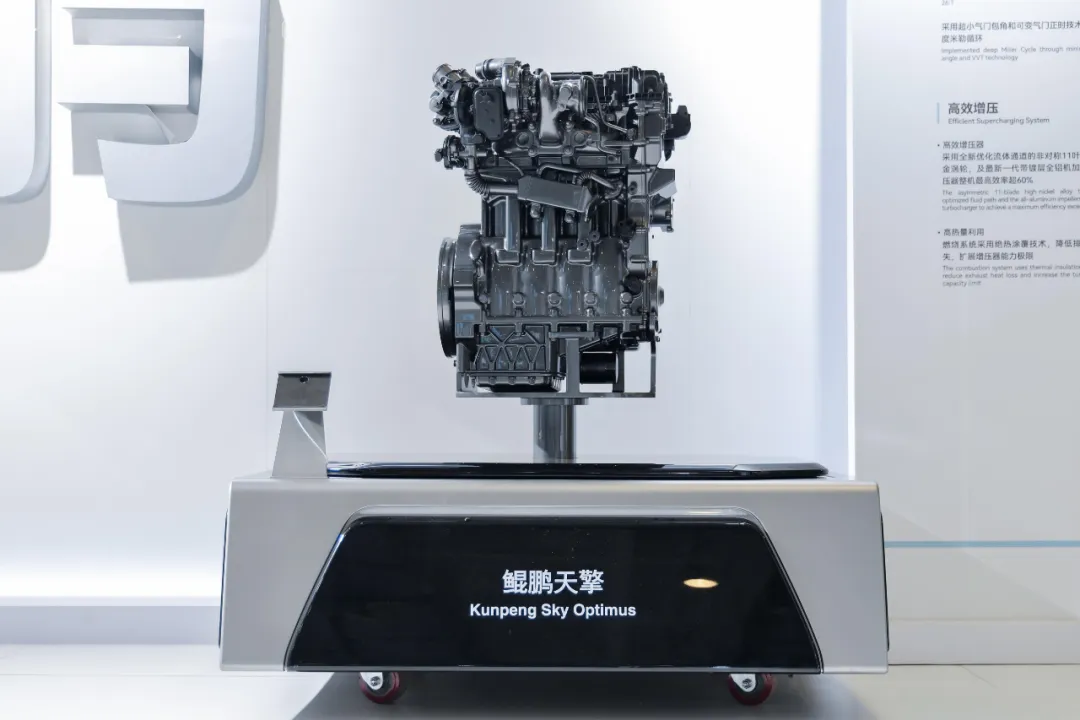 在新能源技术展品中,不仅有C-DM6.0高效混动专用发动机和无级超级电混DHT,鲲鹏天擎、鲲鹏天恒以及2.0T增程专用发动机,还有最新发布的犀牛固态电池和智能兆瓦快充。