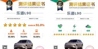 C-GCAP是中汽中心2024年推出的针对健康、能效、低碳三大维度打造的中国绿色汽车评价规程。乐道L90凭借母婴级健康座舱用料、轻量化技术应用和行业领先的超低能耗表现,不仅全五星通过了全部测试,并在健康和能效两个板块加测了选做项,进一步获得“五星+”的评价,成为首个获得C-GCAP认证的大三排SUV。