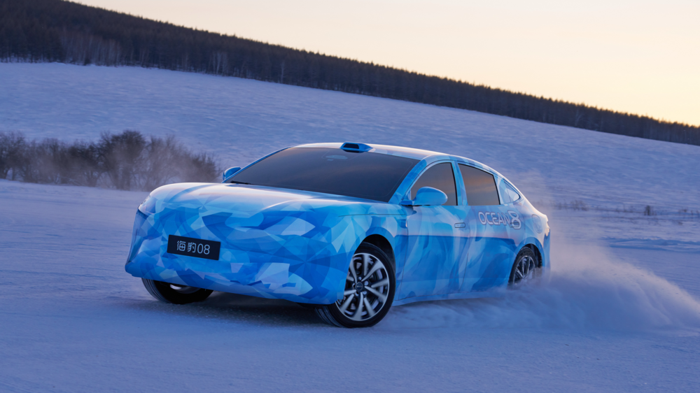DoNews汽车2月9日消息,比亚迪发布海豹 08 官方伪装照,在雪地中尽显身姿,“极境之上,旗舰登场”。