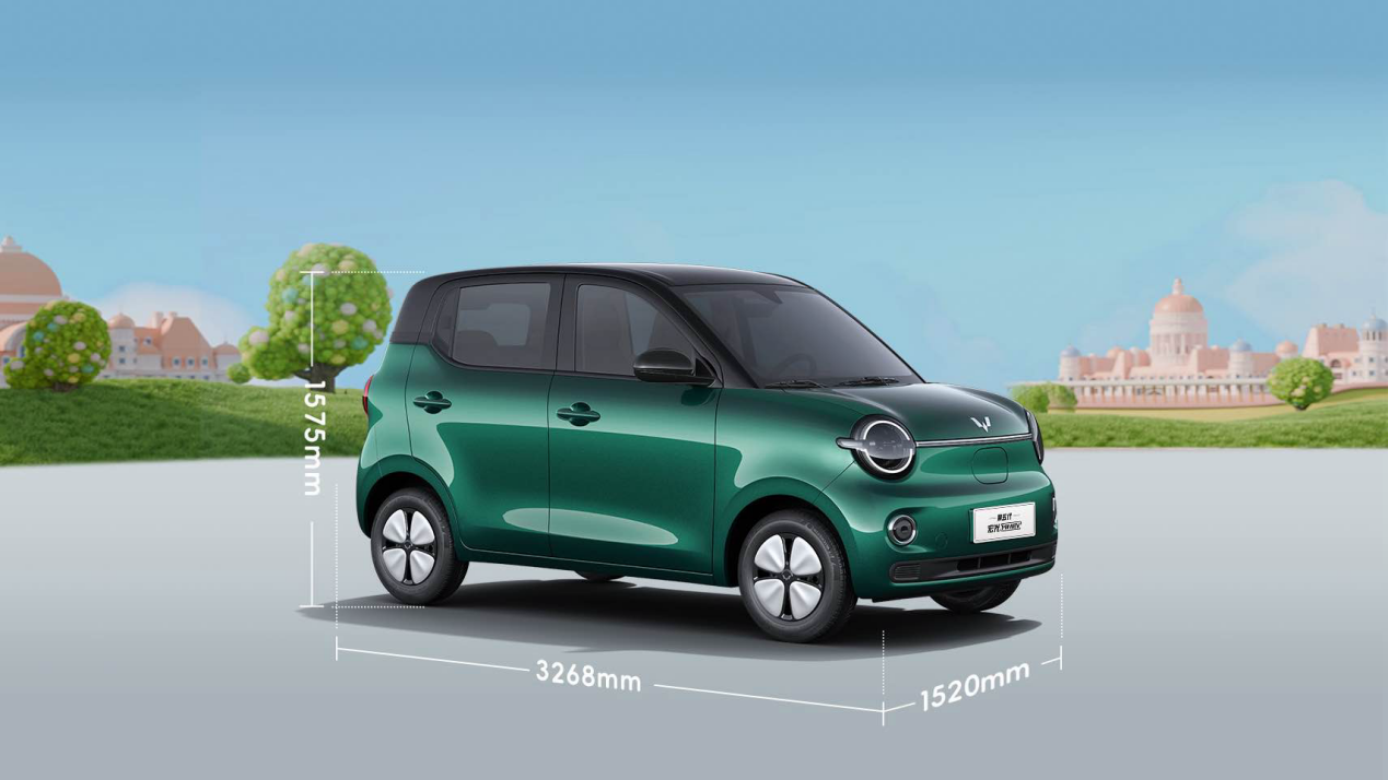 第五代宏光MINIEV车身尺寸为3268 *1520*1575mm,轴距为2190mm,采用四门四座实用布局,延续了前后排独立上下车的优势,座舱空间宽敞舒适,更适配多人同行的日常出行场景。