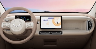 第五代宏光MINIEV内饰设计简约中藏巧思,圆润中见秩序,在细节处展现出精致复古和简约时尚的趣味融合。新车升级为同级领先的怀挡设计,搭配多功能方向盘及10.1英寸中控屏,大幅提升驾驶安全性与便利性。