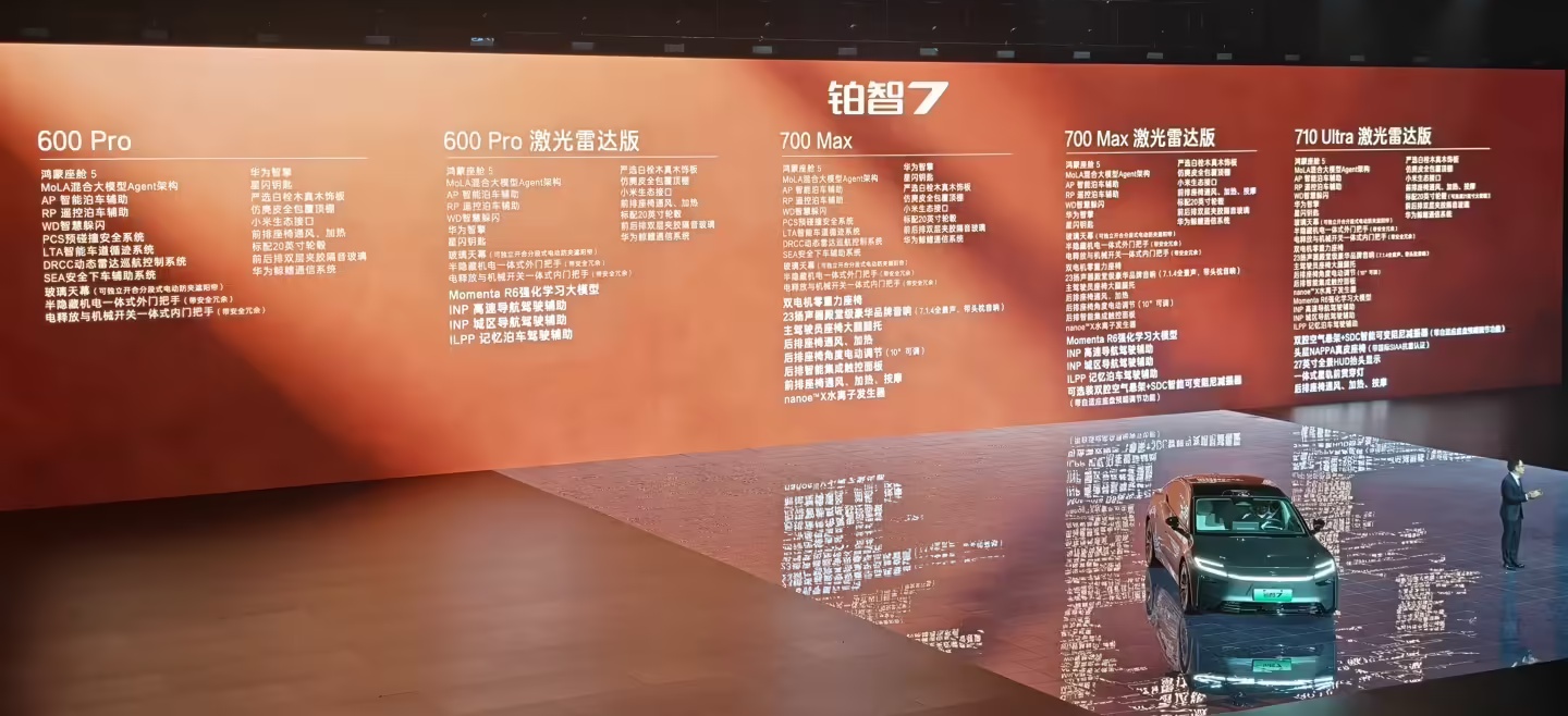 值得一提的是,铂智 7 还采用全场景智慧座舱解决方案,拥有鸿蒙座舱 5、MoLA 混合大模型 Agent 架构、一碰传技术、华为星闪钥匙、小米车载生态等。官方表示,自己是最懂车的全球大厂,也是最懂科技的中国伙伴。