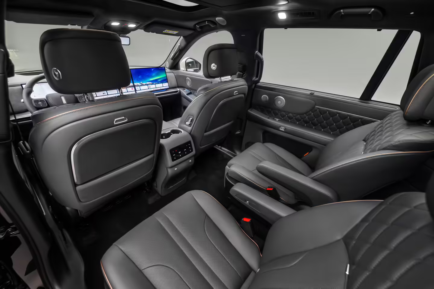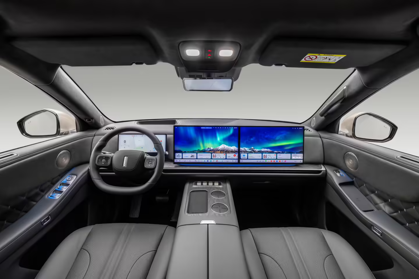 座舱内部采用双联屏设计,将中控屏与副驾娱乐屏连为一体。后排配置尤为突出,配备车载冰箱及可翻转式第二排娱乐屏,契合家庭及商务场景需求。