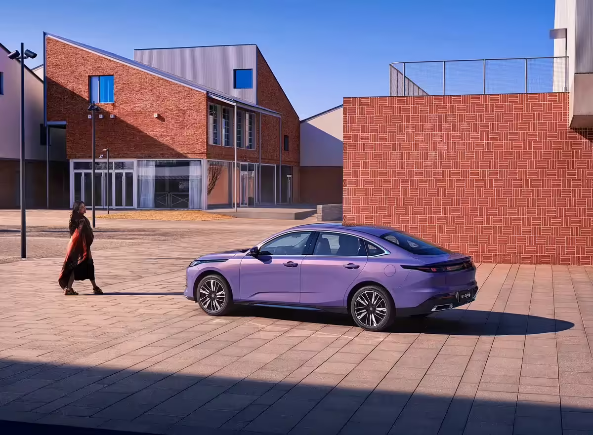 新车整体延续燃油版车型设计语言,但在细节上有所调整。前脸保留无边框格栅设计,镀铬装饰条改为横向布局;配备双 L 型 LED 日间行车灯及 LED 大灯组;前包围两侧导流槽内新增雷达装置,下部加入镀铬饰条。