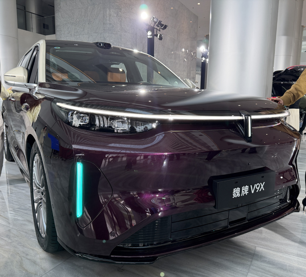 这份礼物的价值,从第一眼便已显现。在产品设计上,魏牌V9X遵循东方“天地之和”7:5美学比例,近5.3米车长,大气优雅。车身悬浮发光车标搭配对称式灯组,细节做工考究;机械门把手融合灯条设计,安全与美感兼备;辅助驾驶状态下小蓝灯亮起,兼具辨识度与安全性。