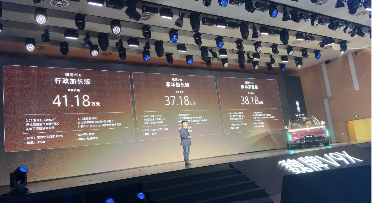 魏牌V9X共3个版本,豪华家庭版、豪华加长版和行政加长版的预售价格分别为38.18万元、37.18万元和41.18万元。此外,魏牌V9X推出多重预售权益,比如,意向金膨胀礼:3000元抵10000元购车尾款;购车无忧礼:全品牌10000增换购补贴,或3年0息金融政策,二选一。