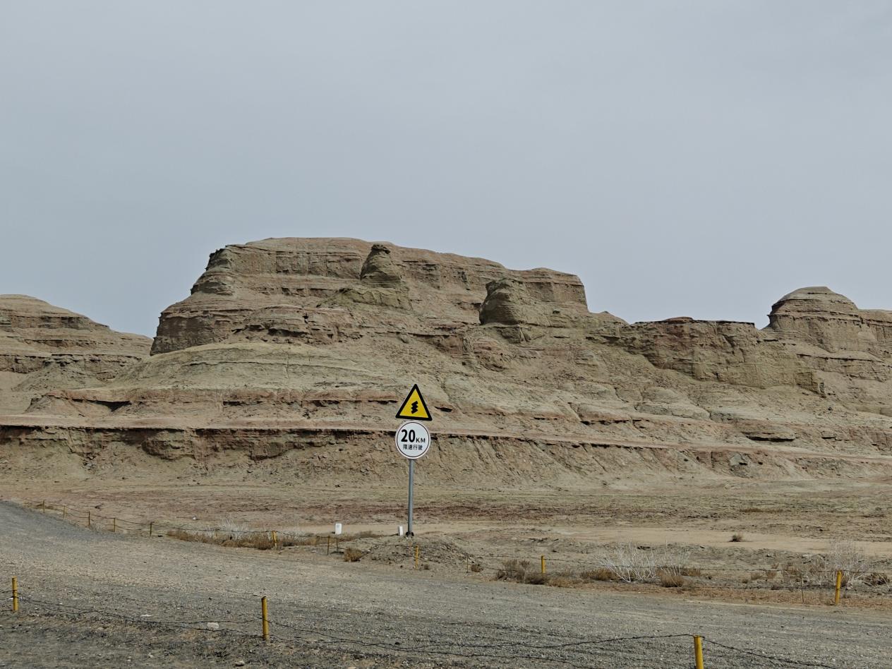 从入口深入,铺装路面很快消失,取而代之的是土石混合的搓板路面——戈壁特有的坚硬搓板。试驾的路线和“达喀尔之路”有部分重合,本该是对越野车的挑战,路上不时出现限速20的标志。这种路况,普通的家用车有的悬架拉不住,颠得你五脏六腑错位,有的车身侧倾严重,弯道里信心全无。