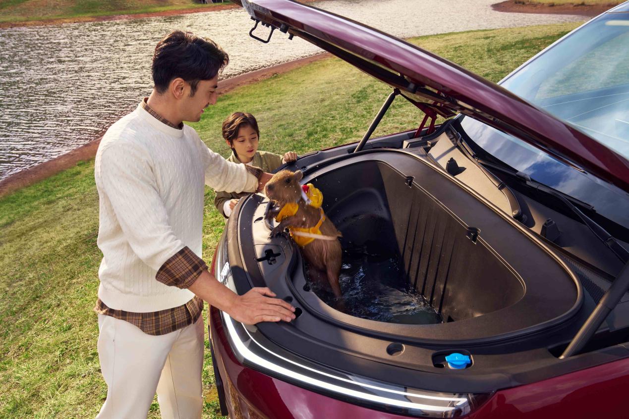 大唐是中国品牌首款采用“2+2+3”座椅布局的全尺寸SUV,真正让七口之家出行告别将就。其拥有同级第一的89.3%得房率与6.34平方米套内面积,第三排不再是临时加座,是名副其实的正座C位。二排中央过道宽达201mm,成年人也能从容通过。满员状态下,前后备箱仍可装下10个20英寸登机箱,全车更有47处储物空间与252L全球最大电动前备箱,轻松收纳钓鱼与运动装备。