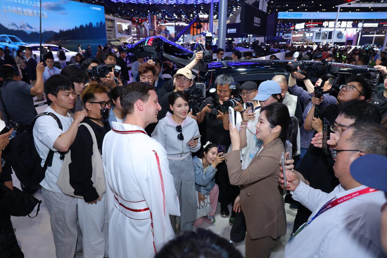 岚图展台人气持续高涨,埃文・凯尔专程打卡岚图泰山引发全场围观,由衷为中国汽车硬核实力点赞。现场不仅国内消费者驻足体验,大批国外友人也被岚图泰山的颜值设计、智能科技与豪华质感深深吸引,彰显中国高端新能源汽车的领先水准。