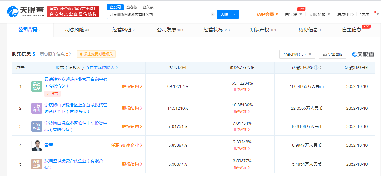 值得一提的是,雷军仍持有7k7k游戏主体运营公司北京迦游网络科技有限公司的股份。