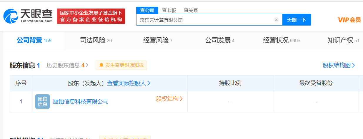 天眼查App显示,近日,京东云计算有限公司发生工商变更,原股东北京汇钧科技有限公司退出,新增厘铂信息科技有限公司为股东,两家公司均为京东关联公司。京东云计算有限公司成立于2018年2月,法定代表人为辛波,注册资本5000万人民币。