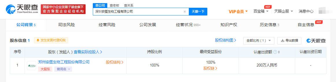 天眼查App显示,2月16日,深圳安图生物工程有限公司成立,注册资本200万人民币,经营范围包括第一类医疗器械销售;实验分析仪器销售;卫生用品和一次性使用医疗用品销售等。股东信息显示,该公司由郑州安图生物工程股份有限公司全资控股。