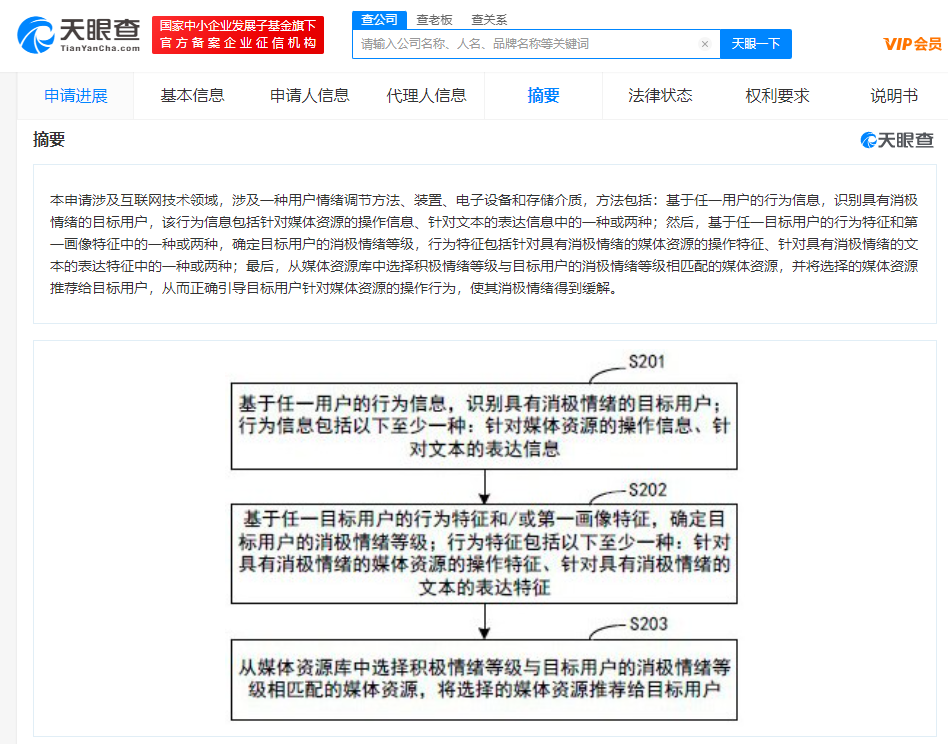 天眼查App显示,8月30日,杭州网易云音乐科技有限公司申请的“用户情绪调节方法、装置、电子设备和存储介质”专利公布。
