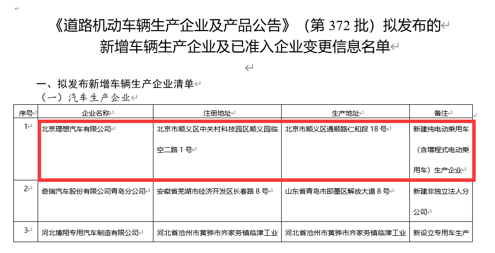 公告显示,理想汽车已正式获批北京理想汽车有限公司公告资质,北京绿色智能工厂年内投产,获得了纯电动乘用车(含增程式电动乘用车)生产资质。此外,重庆理想汽车注销了汽车生产企业准入。