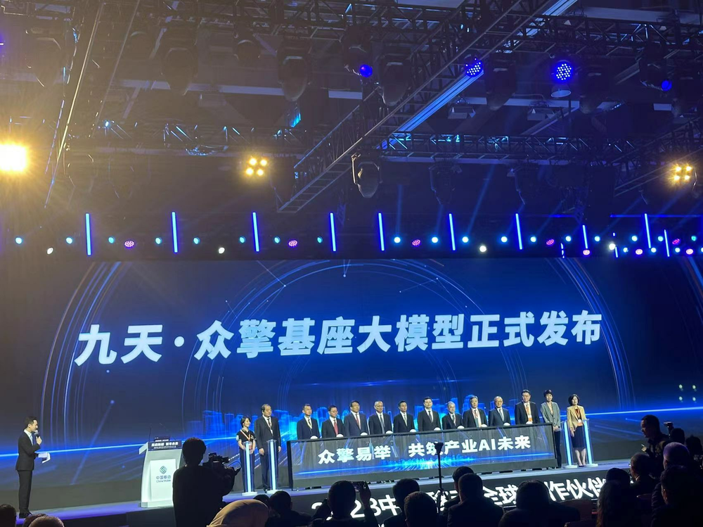 DoNews10月12日消息,2023年中国移动全球合作伙伴大会主论坛在广州举行。会上,九天·众擎基座大模型正式发布。