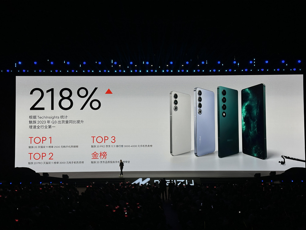 魅族20系列2023年Q3出货量同比提升218%,增速全行业第一。